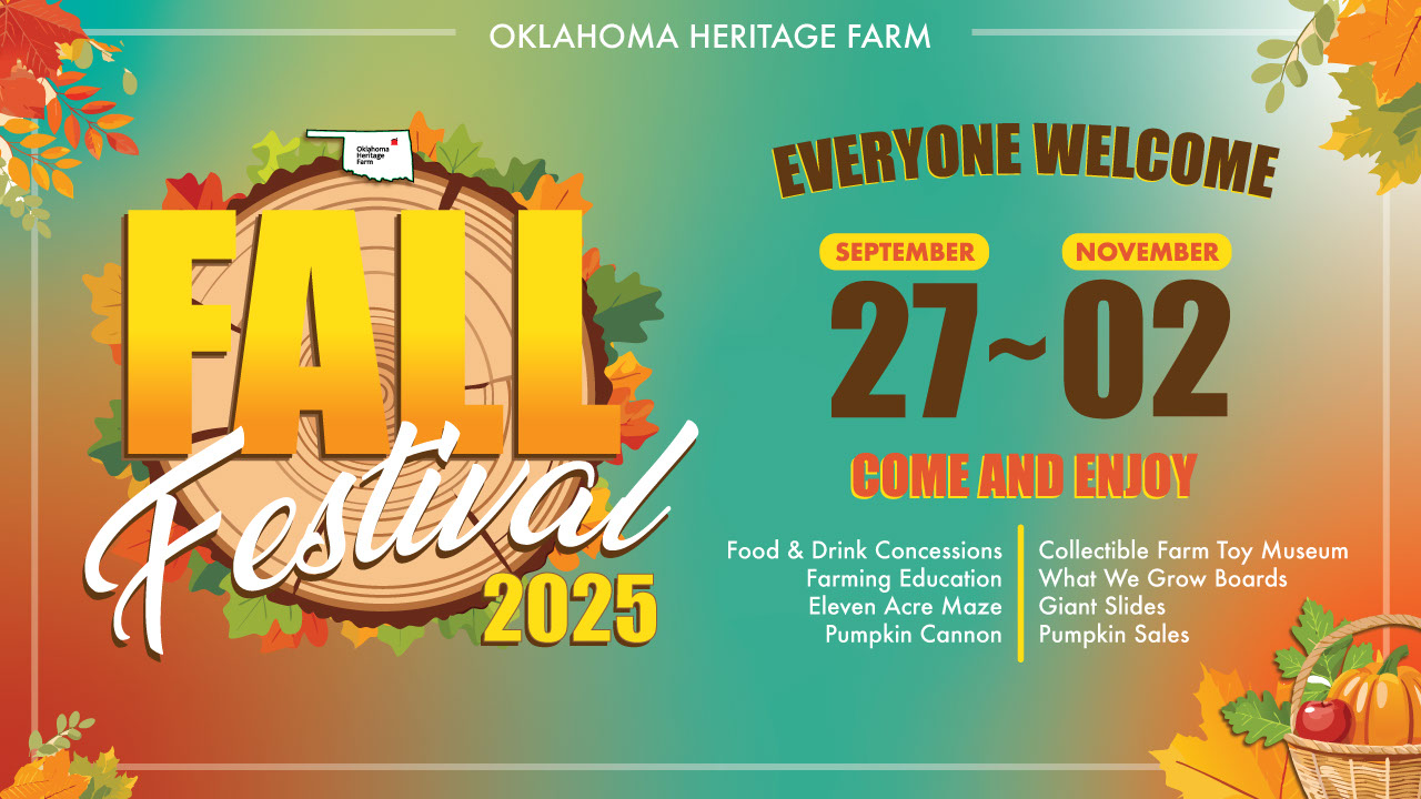 Every year when fall arrives, it's time for the Annual Oklahoma Heritage Farm Fall Festival. Now is the time to buy your preseason tickets to have a great time with your family on our family-owned, fully-functioning farm. With dozens of activities for everyone of all ages, you are sure to have a great time the way it was meant to be.